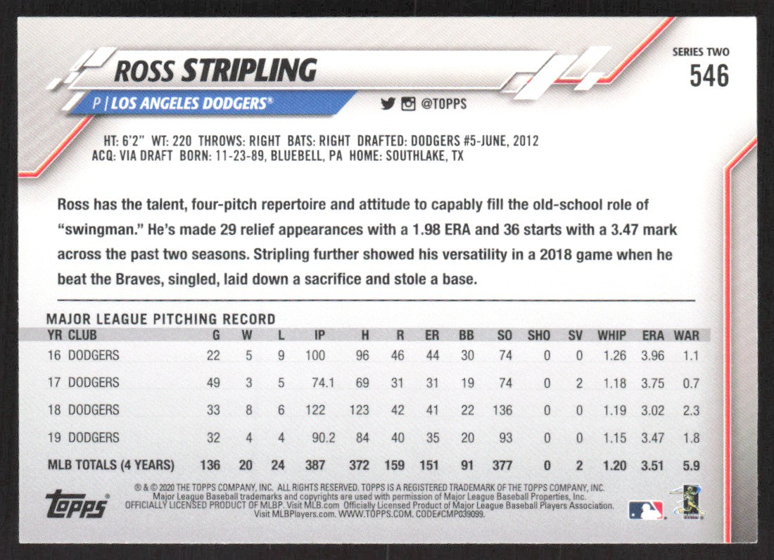 2020 Topps 546 Ross Stripling